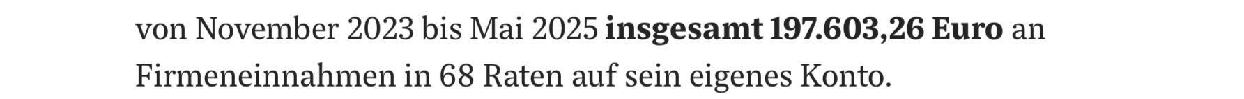 Die mediale Berichterstattung bestätigt auch die konkrete Dimension der Taten. Die Taten erstreckten sich dabei über einen längeren Zeitraum. Der Täter war bereits seit Februar 2022 im Unternehmen tätig. Die unberechtigten Überweisungen begannen im November 2023 und setzten sich bis Mai 2025 fort. So heißt es, der Täter habe „von November 2023 bis Mai 2025 insgesamt 197.603,26 Euro“ in „68 Raten“ auf sein eigenes Konto transferiert.